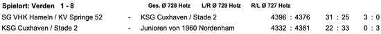 Die KSG Cuxhaven / Stade Il steht nach dem Sieg gegen die KSK Hindenburg / Oldenburg in der Verbandsliga auf Platz 10. Damit wurde das wichtigste Spiel der Saison sicher gewonnen. (1) Startspieler Sönke...