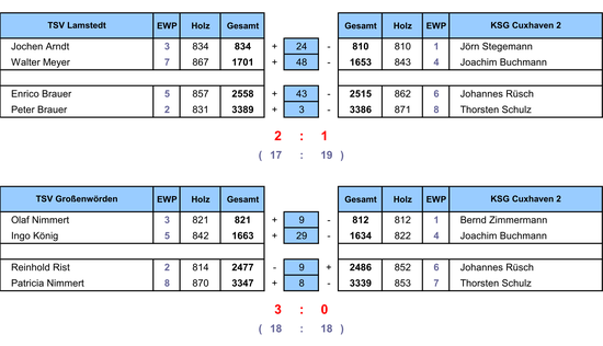 Für die KSG kamen zum Einsatz: Jörn Stegemann (810), Joachim Buchmann (843+822), Johannes Rüsch (862+852), Bernd Zimmermann (812) und Thorsten Schulz (871+853).